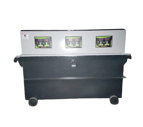 The tank of Servo Voltage Stabilizer is made of M.S. steel sheets with adequate bracing & stiffness. All the external surfaces are given a primary coat of epoxy and finishing coat of epoxy paint for better life and leak proof. All our tanks are power coated for shelf life of 20 – 25 years.